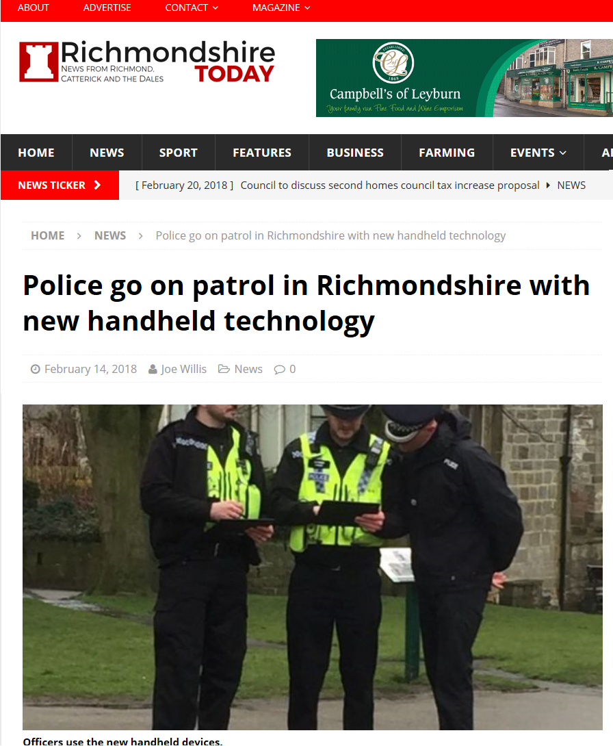 Another great write-up from the local North Yorkshire press (Richmondshire Today) focusing on tuServ in use by the operational officers.